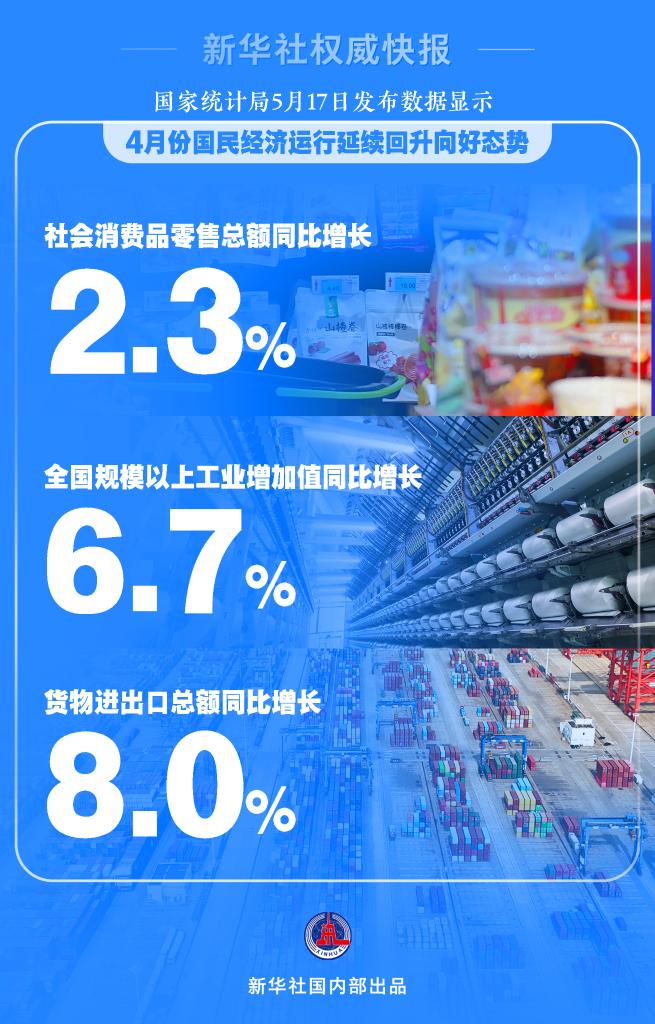 “總的來看,4月份國民經濟運行平穩(wěn),雖然部分指標受節(jié)假日錯月、上年同期基數(shù)較高等因素影響增速有所放緩,但工業(yè)、出口、就業(yè)、物價等主要指標總體改善,新動能保持較快成長,國民經濟延續(xù)回升向好態(tài)勢,積極因素累積增多?!眹医y(tǒng)計局新聞發(fā)言人劉愛華在當日舉行的國新辦發(fā)布會上說。