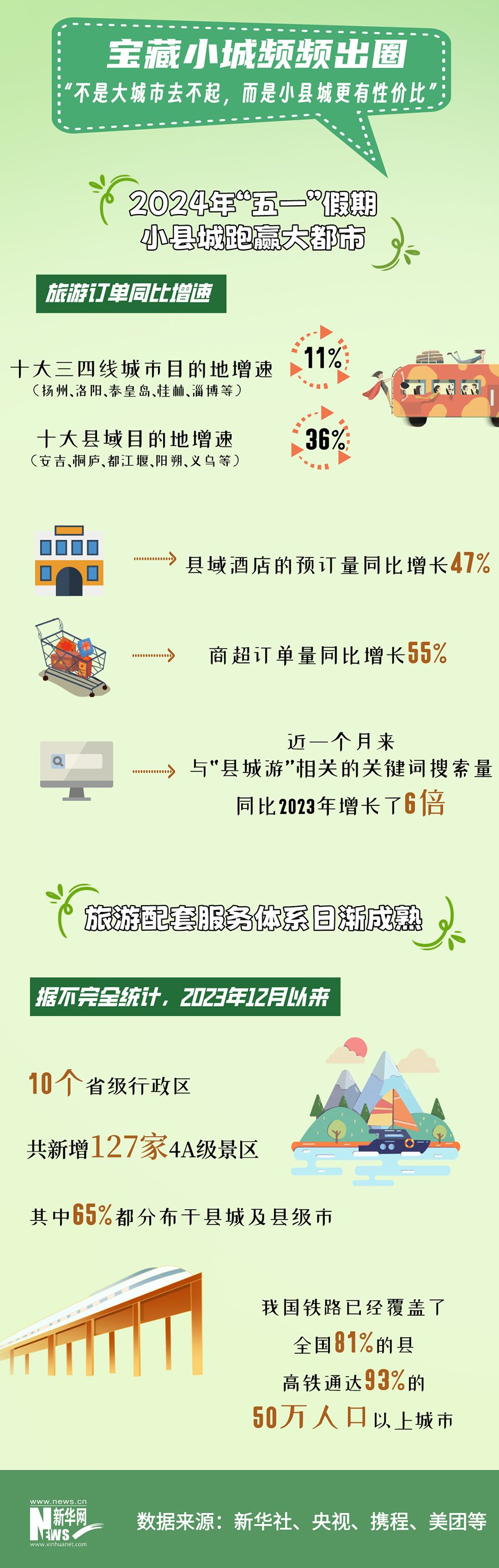 “不是大城市去不起,而是小縣城更有性價(jià)比”。一眾“寶藏”小城的涌現(xiàn),背后是供需兩端的“雙向奔赴”:出游者旅游理念不斷演進(jìn),讓小縣城進(jìn)入了大眾的視野??h域旅游配套服務(wù)體系日漸成熟,為出行者提供了更好的旅游體驗(yàn)。