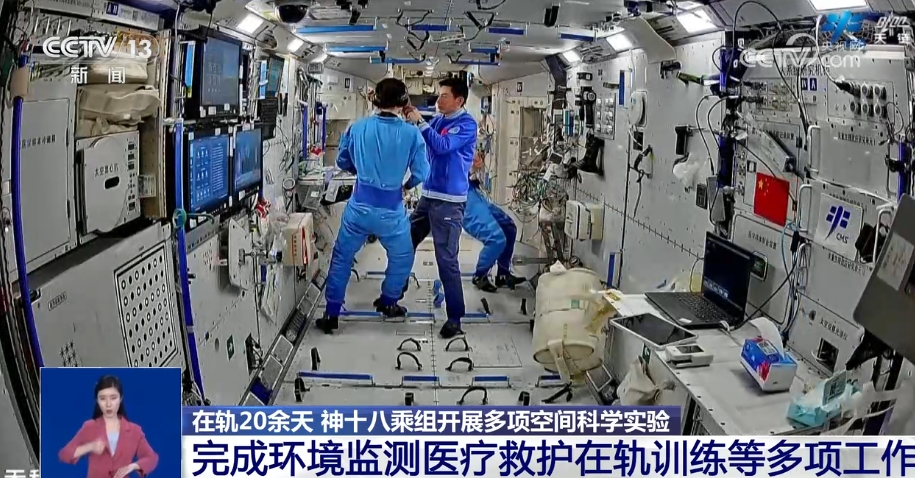 在按計(jì)劃開展科學(xué)實(shí)(試)驗(yàn)及實(shí)驗(yàn)裝置維護(hù)的同時(shí),三名航天員還完成了空間站內(nèi)環(huán)境監(jiān)測(cè)、醫(yī)療救護(hù)在軌訓(xùn)練等多項(xiàng)工作。