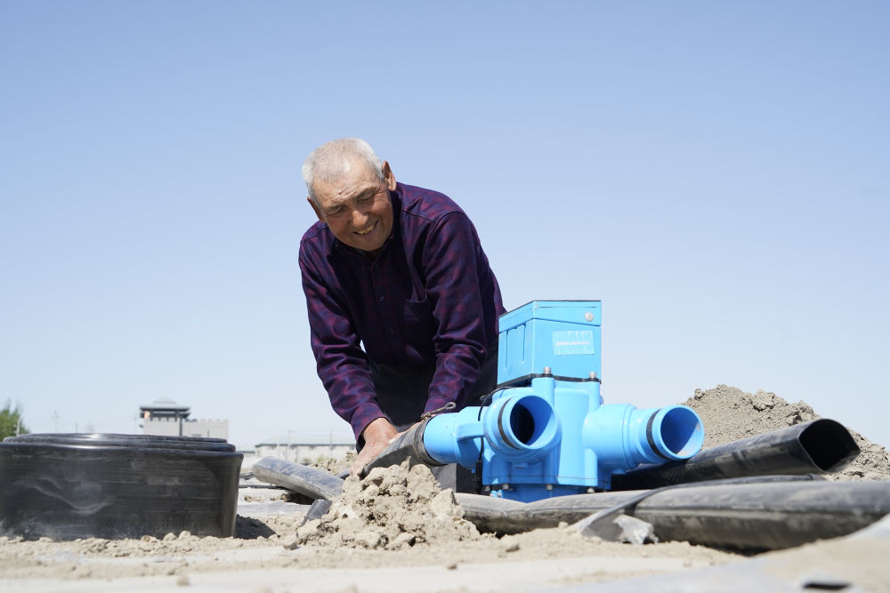 “我手下有七八個人,都是這里的村民,管著1500畝地?!惫吕@拉得意地說。棉花播種前后,他和同伴忙著安裝連接泵房和滴灌帶的一整套供水系統(tǒng),由于每一個水閘都安有傳感器,哈衣繞拉用一臺手機就能監(jiān)測灌溉水流量、控制閥門開關。