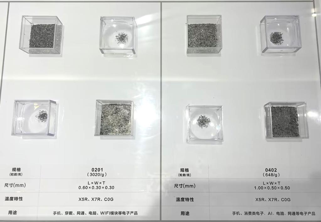 風(fēng)華高科生產(chǎn)的部分電容產(chǎn)品,用于手機(jī)、消費(fèi)類(lèi)電子、AI等電子產(chǎn)品。受訪企業(yè)供圖