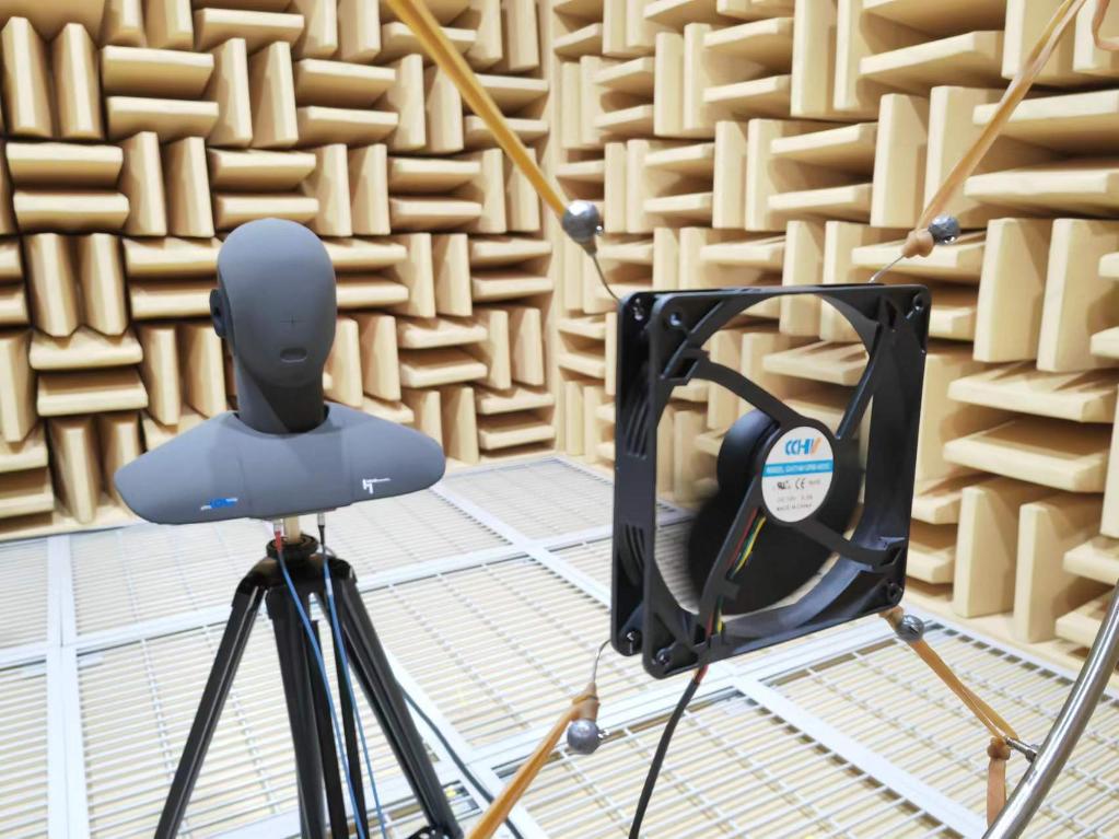 5月19日,晟輝科技實(shí)驗(yàn)室內(nèi),一款風(fēng)機(jī)正在接受噪音檢測(cè)。新華社記者謝希瑤 攝