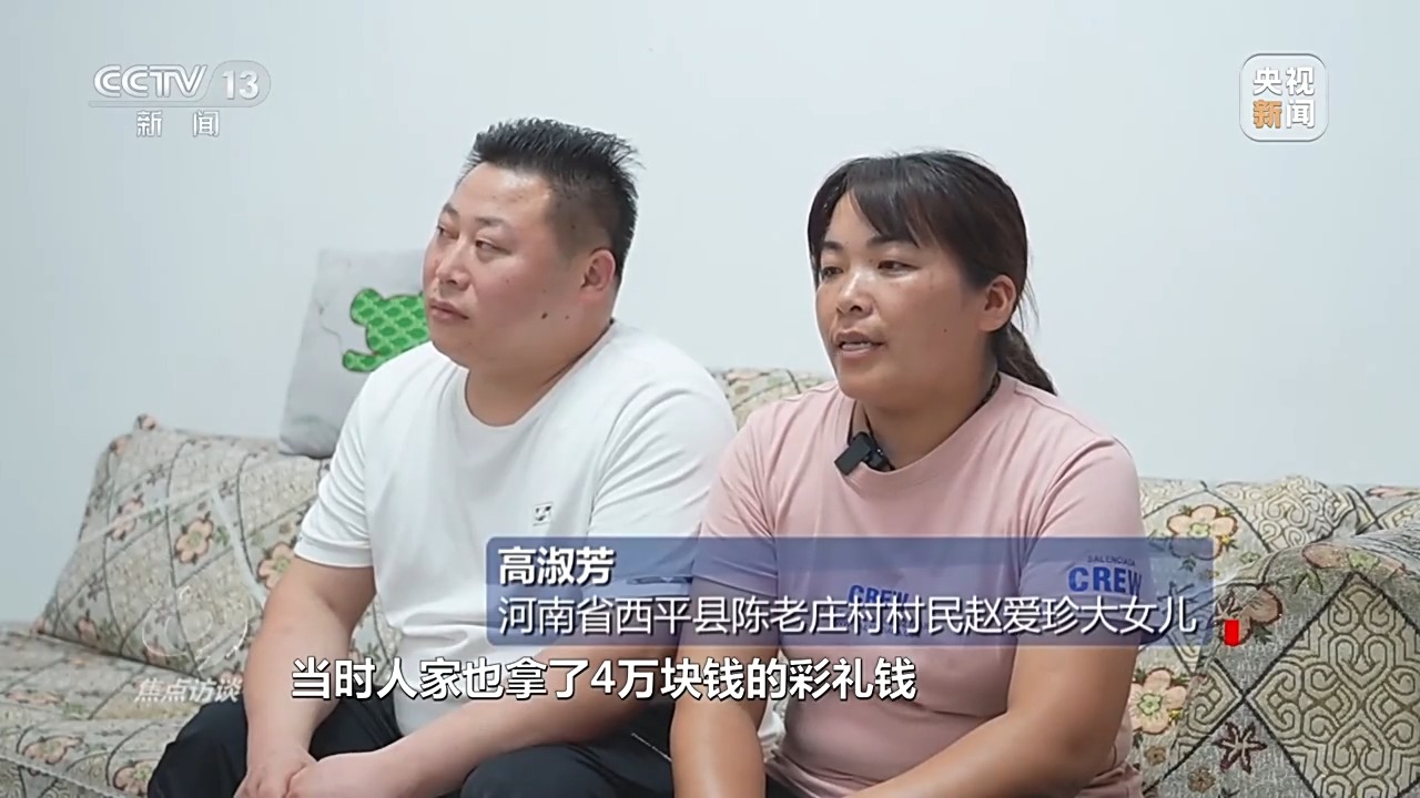 河南省西平縣陳老莊村村民趙愛(ài)珍大女兒 高淑芳:當(dāng)時(shí),人家也拿了4萬(wàn)塊錢(qián)的彩禮,但是我們沒(méi)有要,我感覺(jué)“零彩禮”給我們家?guī)?lái)了幸福。后來(lái)我們村成立了“紅娘協(xié)會(huì)”,我就積極加入了“紅娘協(xié)會(huì)”,去各個(gè)農(nóng)戶(hù)家宣傳低價(jià)彩禮的理念,讓更多的人受益。