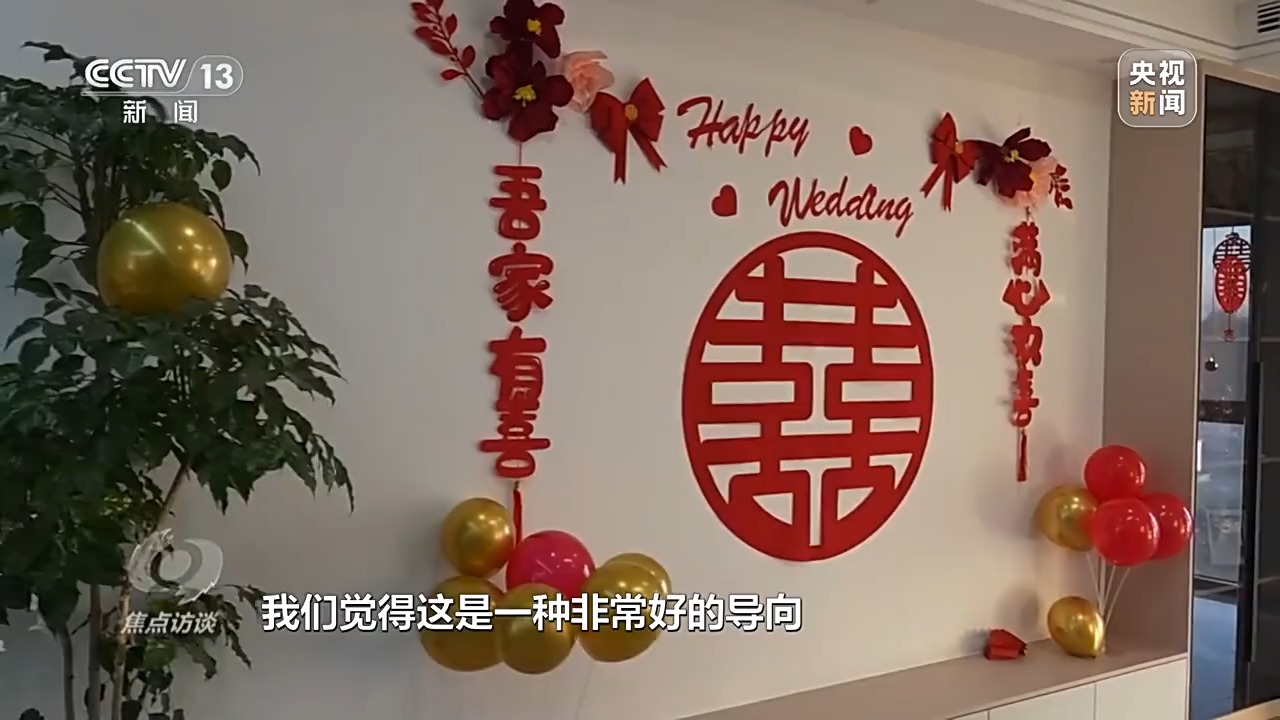 共青團(tuán)中央宣傳部副部長(zhǎng) 劉釗:我們?cè)谶M(jìn)行社會(huì)倡導(dǎo),進(jìn)行文明引導(dǎo),在各地舉辦了很多集體婚禮,確實(shí)得到了基層青年比較熱烈比較積極的響應(yīng)。他們用更樸素更自然更貼近自己實(shí)際需求的方式方法來(lái)籌辦自己的婚禮,也來(lái)回應(yīng)一些高額彩禮給他們所帶來(lái)的壓力,我們覺(jué)得這是一種非常好的導(dǎo)向。