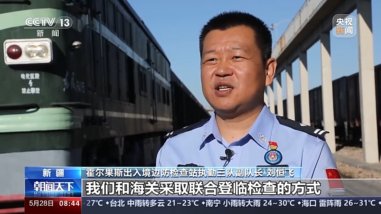 霍爾果斯出入境邊防檢查站執(zhí)勤三隊副隊長 劉恒飛:我們和海關(guān)采取聯(lián)合登臨檢查的方式對班列車體進(jìn)行檢查,查驗出入境司乘人員和貨物基本是同步進(jìn)行,30分鐘內(nèi)即可完成查驗。