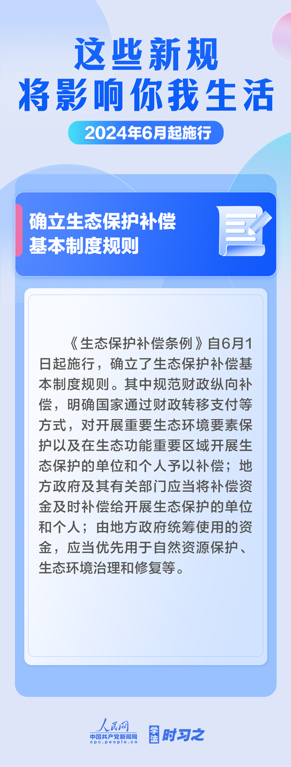 保障糧食有效供給;確立生態(tài)保護補償基本制度規(guī)則;規(guī)范保障海警機構(gòu)依法履職……6月起,這些新規(guī)施行,將影響你我生活。