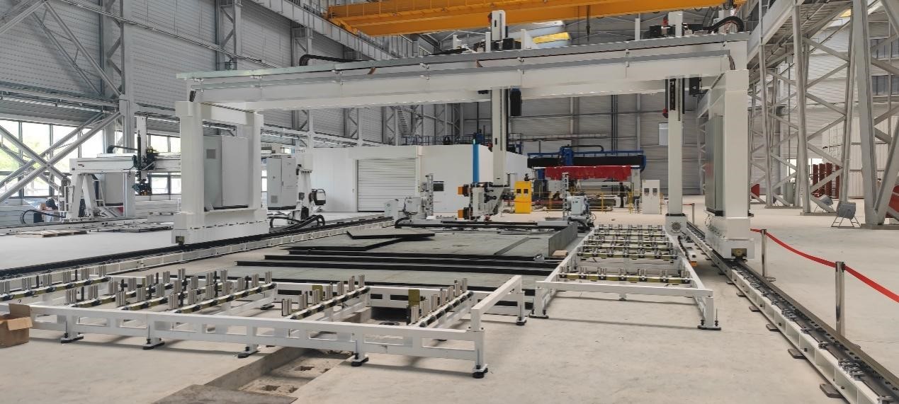 “以前人工操作,從鋼板進(jìn)去到小組立出來(lái),整個(gè)流程需要13天?,F(xiàn)在采取無(wú)人化產(chǎn)線,制造周期可以縮短至1天。原來(lái)這部分的船舶建造可能需要幾十個(gè)人,現(xiàn)在只要一兩個(gè)人操作產(chǎn)線即可。”上海交通大學(xué)機(jī)械與動(dòng)力工程學(xué)院研究員、長(zhǎng)興海洋實(shí)驗(yàn)室船舶數(shù)字孿生技術(shù)研究中心負(fù)責(zé)人胡小鋒牽頭的小組立無(wú)人產(chǎn)線,目前已完成主體技術(shù)和裝備研發(fā),正處于工程調(diào)試階段。