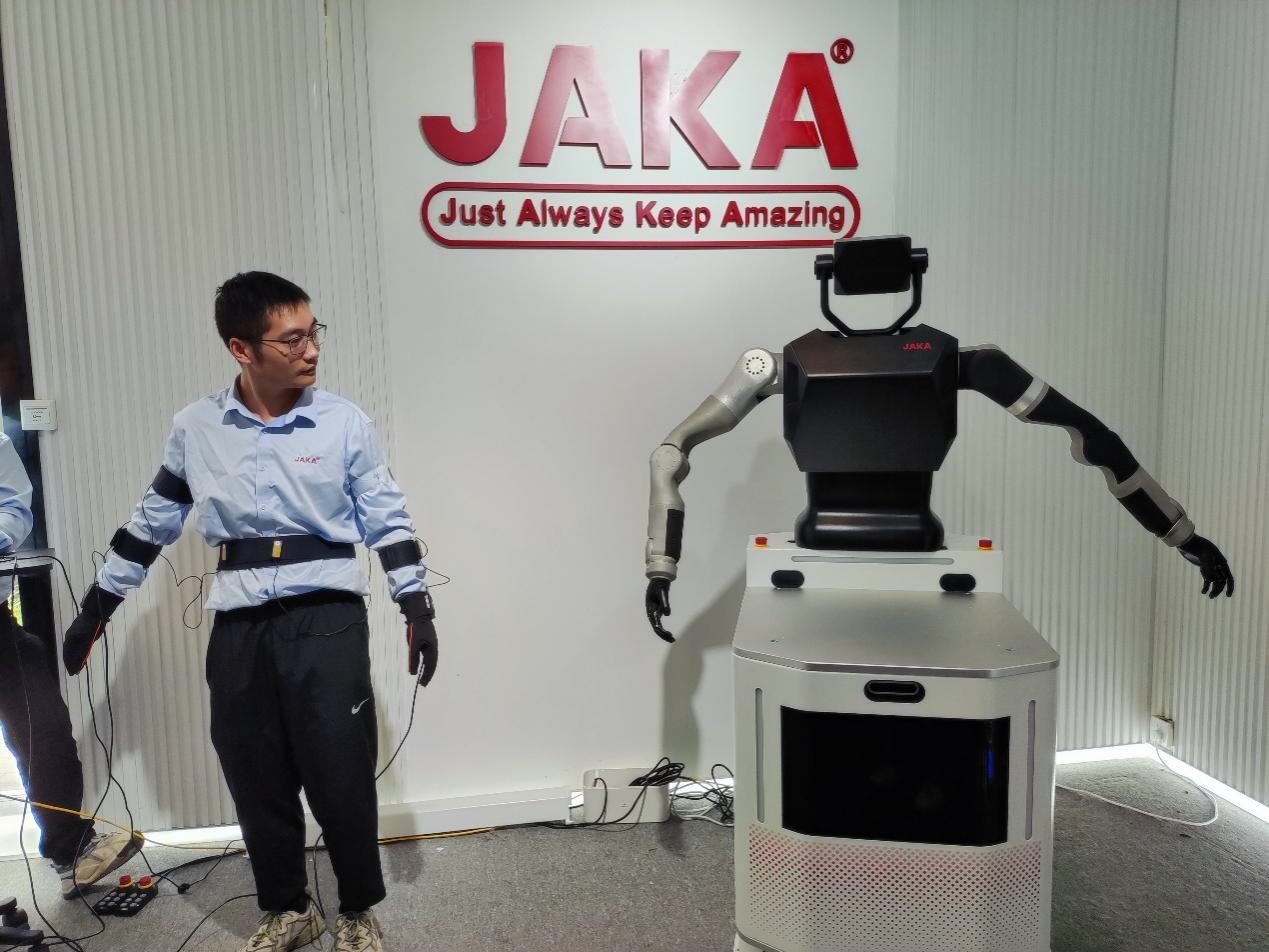 節(jié)卡機(jī)器人公司工作人員展示用動(dòng)作控制機(jī)器人。黃曉慧攝