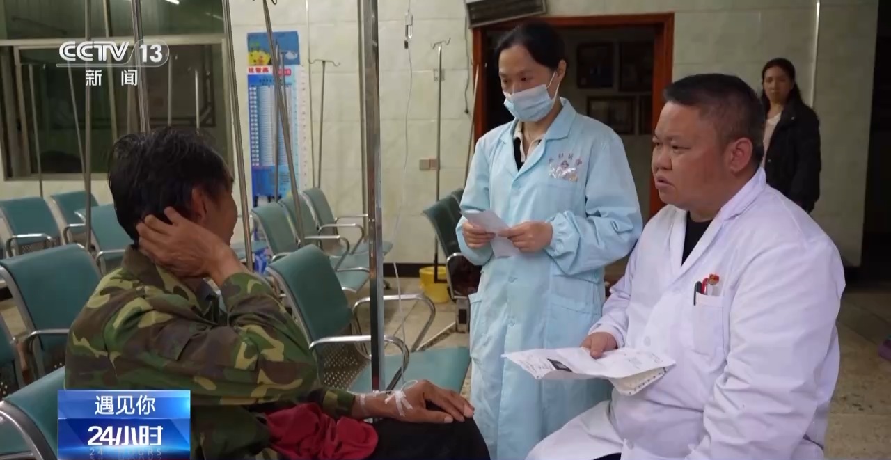 為了方便在外務(wù)工的孩子及時(shí)了解家中父親的病情,譚鑒軍給譚興德的兒子打去了視頻,將老人的病情以及治療方法都一一進(jìn)行了說明。