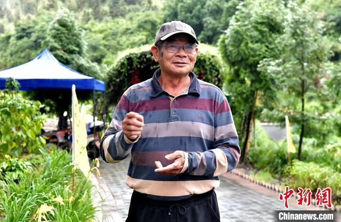 5月22日,年過六旬的臺(tái)農(nóng)陳慶徽接受中新社記者采訪時(shí),講述了他在福建漳平種萱草的谷主夢(mèng)。 中新社記者 張斌 攝