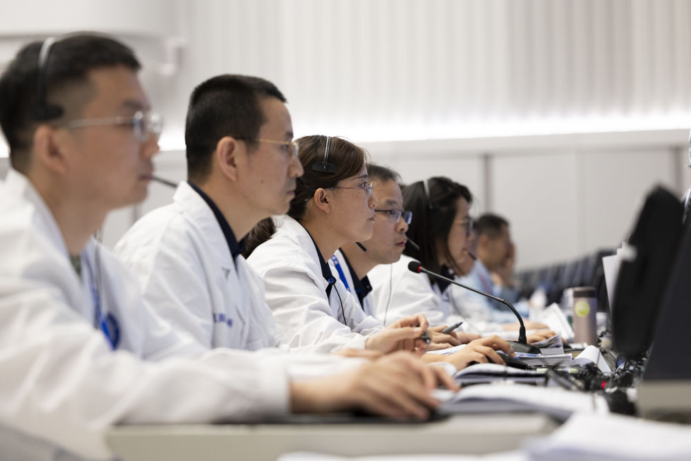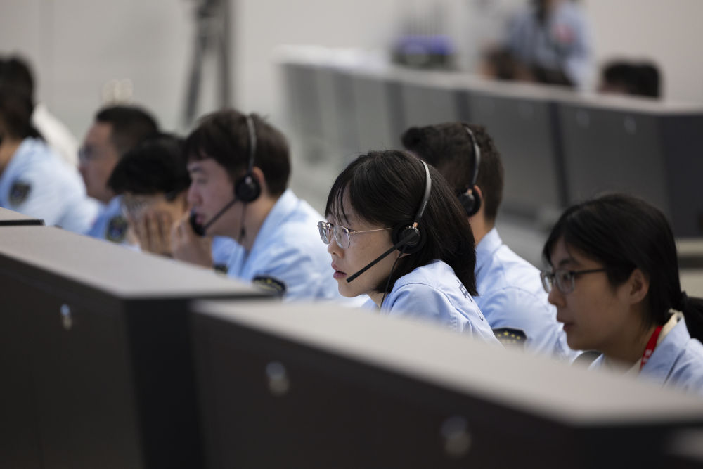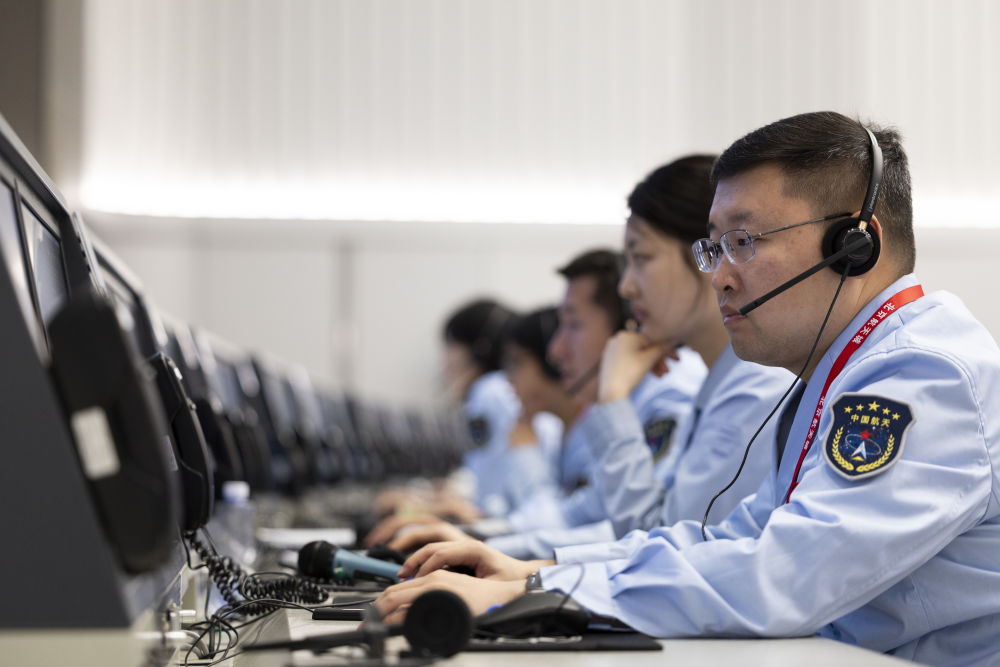6月4日,在北京航天飛行控制中心,工作人員在監(jiān)測嫦娥六號(hào)上升器自月球背面起飛狀況。