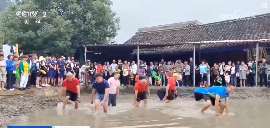 活動(dòng)現(xiàn)場(chǎng),蒙眼抓小豬比賽吸引不少游客參加。選手們蒙好眼,等待裁判一聲令下,就可以開(kāi)始抓小豬了。