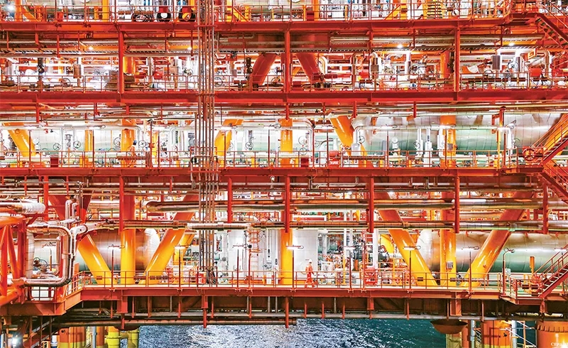 近年來(lái),我國(guó)堅(jiān)持創(chuàng)新引領(lǐng),加快發(fā)展新質(zhì)生產(chǎn)力,重大工程科技含量持續(xù)攀升。2023年11月14日,中國(guó)海油宣布我國(guó)渤海首個(gè)千億方大氣田——渤中19—6氣田Ⅰ期開發(fā)項(xiàng)目成功投產(chǎn),標(biāo)志著我國(guó)海上深層復(fù)雜潛山油氣藏開發(fā)邁入新階段。圖為工作人員在渤中19—6氣田作業(yè)。 新華社發(fā) 杜鵬輝/攝