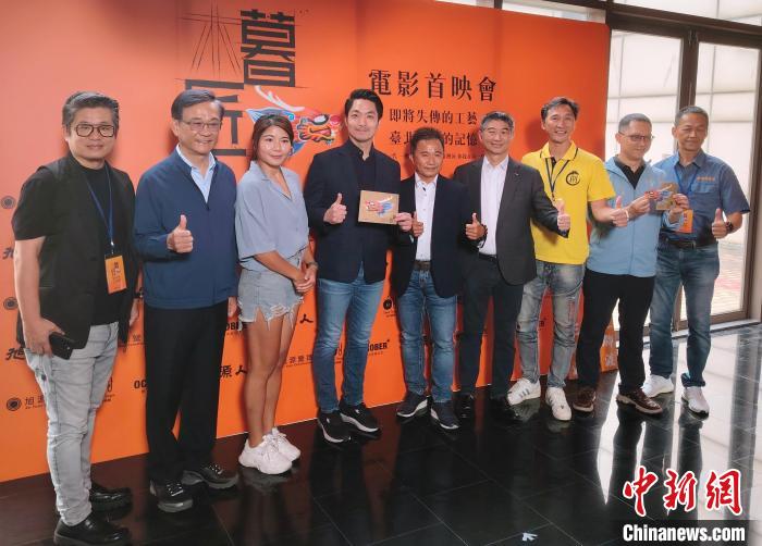 講述知名龍舟匠師劉清正故事的紀(jì)錄片《暮匠》首映會(huì)近日在臺(tái)北舉行。圖為臺(tái)北市市長蔣萬安(左四)、導(dǎo)演林佳儒(左三)、出品方旭源營造工程公司董事長朱東輝(右五)出席活動(dòng)。中新社記者 劉舒凌 攝
