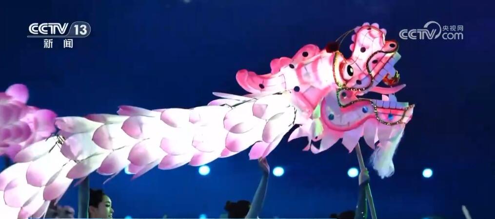 非遺的核心技藝在生產(chǎn)實(shí)踐中得到傳承。光是龍燈扎制業(yè)務(wù),已經(jīng)遍布全國十幾個省份,平均每年訂單超過1000萬元。如今,扎制好的龍燈,更多是被用在當(dāng)?shù)氐凝埼璞硌萆稀_@是大型非遺山水實(shí)景劇《追夢·銅梁龍》的演出現(xiàn)場,觀眾可以看到水云龍、荷花龍等十幾種銅梁傳統(tǒng)龍舞,其中壓軸戲,便是銅梁火龍。
