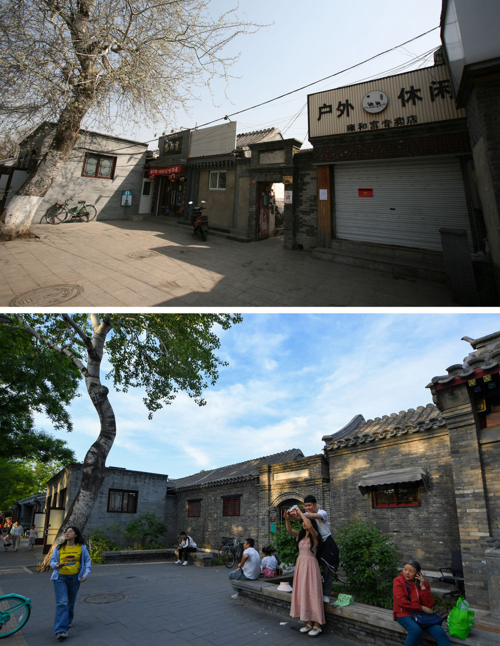 拼版照片:上圖為2018年6月8日拍攝的北京雍和宮大街40號(hào)(資料照片);下圖為2024年5月11日拍攝的改造后的同一地點(diǎn)(新華社記者鞠煥宗攝)。新華社發(fā)