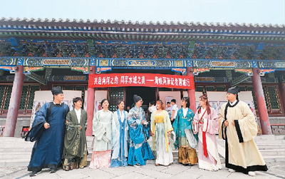 在聊城文廟,臺灣媒體人穿漢服體驗(yàn)傳統(tǒng)文化。