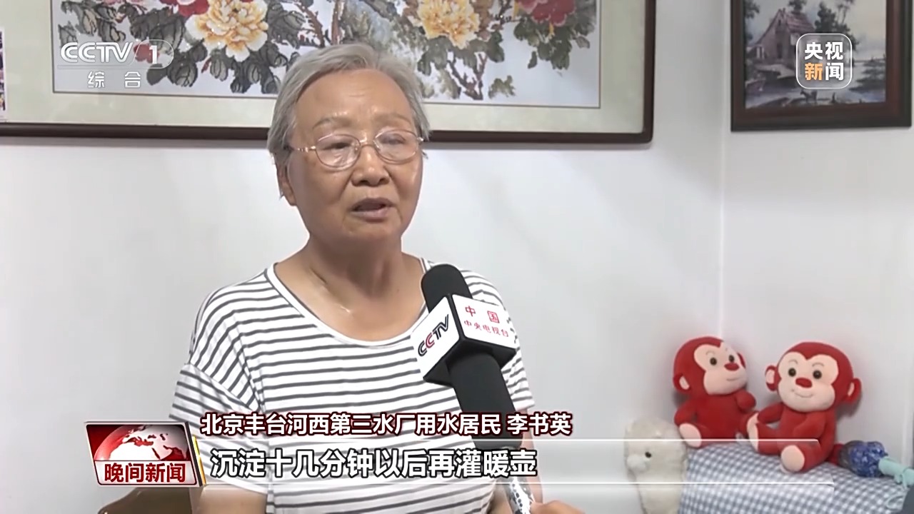 北京豐臺(tái)河西第三水廠用水居民 李書英:我們原來用水壺?zé)_水以后,還得沉淀,沉淀十幾分鐘以后再灌暖壺,但是暖壺里水堿也特別多?,F(xiàn)在通過南水北調(diào)水質(zhì)比之前好多了,水堿比原來大大減少。