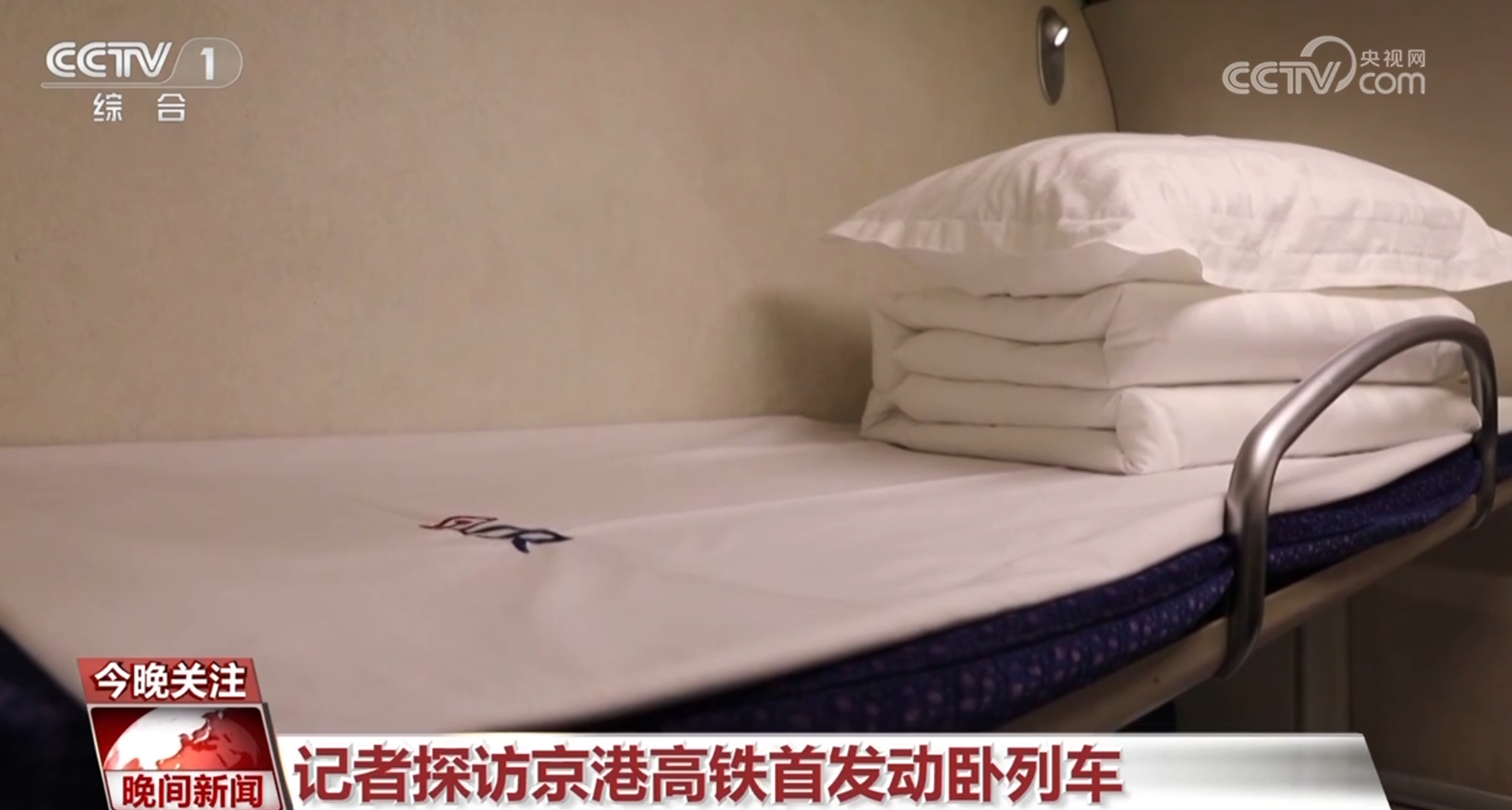 這趟由北京西開往香港西九龍的高鐵首發(fā)動臥列車,是由13節(jié)軟臥車和2節(jié)二等座車以及一節(jié)餐車組成,共有二等座110席、軟臥520席。軟臥車每輛車設有10個包廂,共40個鋪位。