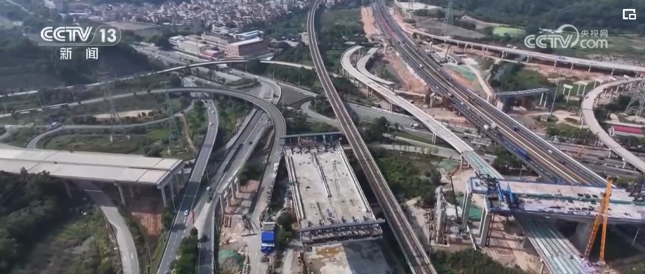 中開高速在河道縱橫交錯、高速公路密度較高的珠三角地區(qū),橋隧比高達(dá)94%。其中,在跨越廣澳高速和廣珠城際的位置,橋梁施工遇到了最大難題,就是施工不能影響高速與城際的正常運行。為此,施工單位建造一座單體轉(zhuǎn)體橋,通過橋體旋轉(zhuǎn),避免施工與正常行車形成沖突。