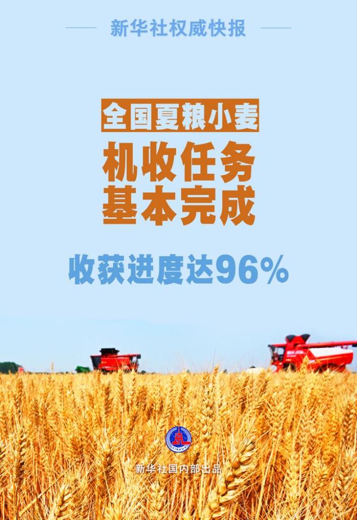 目前,全國夏糧小麥?zhǔn)斋@進(jìn)度已達(dá)96%,“三夏”小麥機收任務(wù)基本完成。