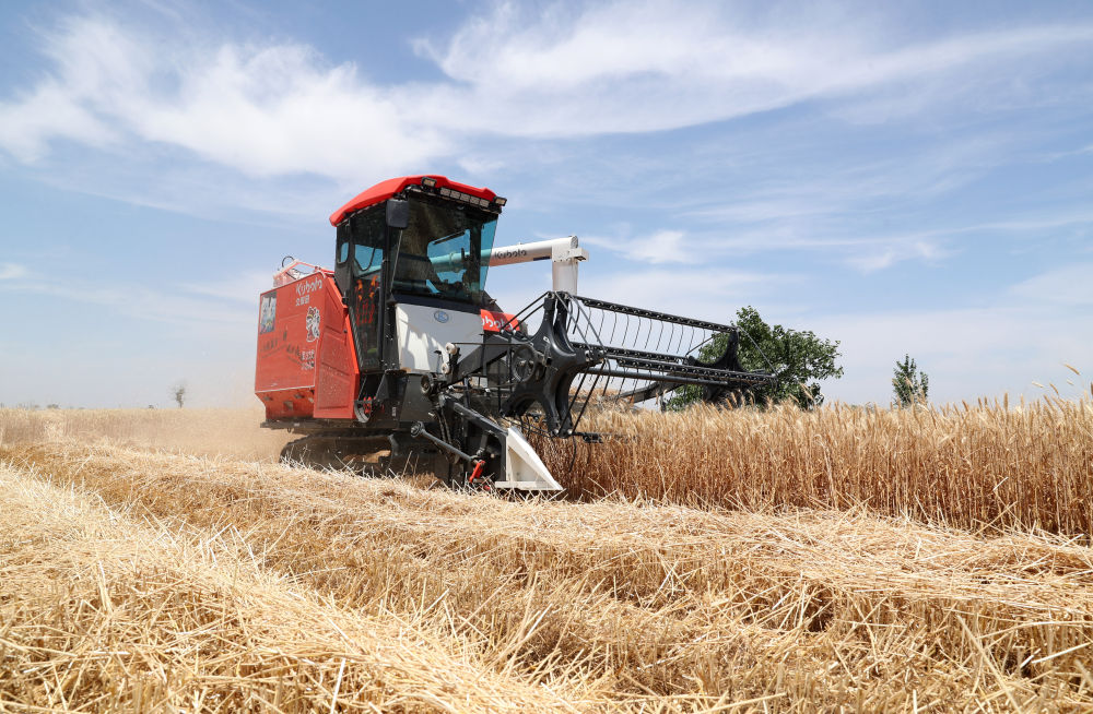2024年5月27日,安徽省蒙城縣樂土鎮(zhèn)農(nóng)民駕駛農(nóng)機(jī)搶收小麥。新華社發(fā)(胡衛(wèi)國攝)