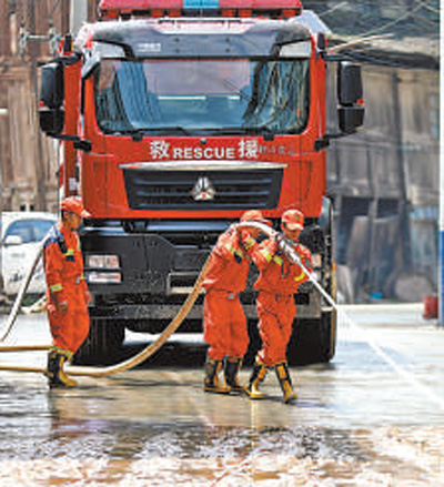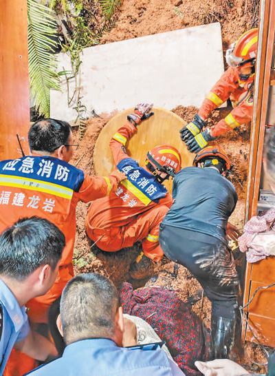 6月17日,消防人員在福建省龍巖市武平縣象洞鎮(zhèn)開展救援。
