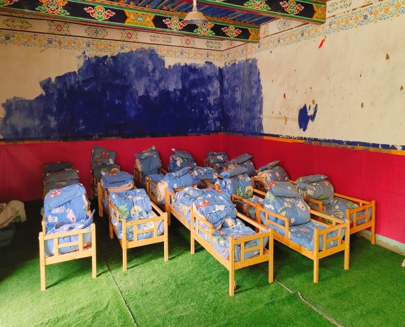 金點(diǎn)子,抓實(shí)干。自階段性入戶工作開展以來(lái),駐西嘎村第十三批工作隊(duì)認(rèn)真了解入戶時(shí)發(fā)現(xiàn)的村幼兒園改造未能推進(jìn)的問(wèn)題,現(xiàn)場(chǎng)走訪村幼兒園,排查村幼兒園用火、用電、用氣、食品衛(wèi)生安全隱患。在交談中,兩位教師談及幼兒園房間老舊、水泥地板凹凸不平,導(dǎo)致幼兒無(wú)法午休的問(wèn)題,工作隊(duì)第一時(shí)間請(qǐng)示領(lǐng)導(dǎo),現(xiàn)場(chǎng)勘察房間形狀與大小,駐村隊(duì)員自發(fā)購(gòu)買并鋪就64.2平米防滑草坪地毯,以改善園內(nèi)22名幼兒生活環(huán)境,給孩子們創(chuàng)建了相對(duì)舒適、干凈的午休環(huán)境。村幼兒園教師次珍表示:“此次活動(dòng)極大改善了孩子們的生活條件,感謝人行日喀則市分行駐村工作隊(duì)一直以來(lái)對(duì)村幼兒園工作的關(guān)心?!?/p>