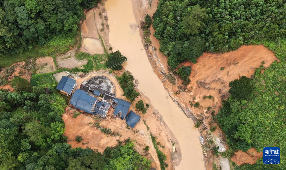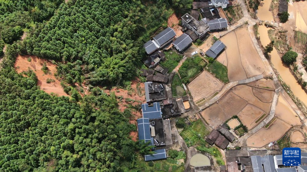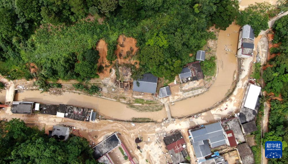 災(zāi)后的廣東省梅州市平遠縣泗水鎮(zhèn)大新村(6月19日攝,無人機照片)。新華社記者 盧漢欣 攝