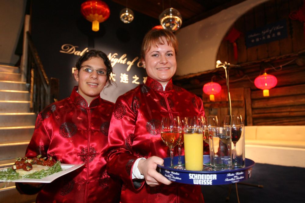 2007年1月25日,在瑞士達(dá)沃斯舉行的“中國(guó)大連之夜”上,當(dāng)?shù)嘏?wù)員穿上了中國(guó)傳統(tǒng)服裝。