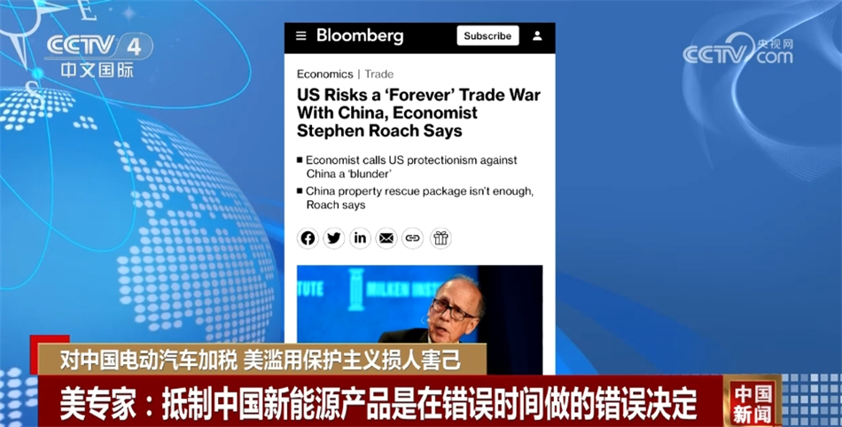 美國(guó)耶魯大學(xué)高級(jí)研究員斯蒂芬·羅奇稱(chēng):“我認(rèn)為這是美國(guó)選舉年由政治驅(qū)動(dòng)的巨大戰(zhàn)略錯(cuò)誤,對(duì)中國(guó)這樣一個(gè)在生產(chǎn)零碳新能源產(chǎn)品方面具有比較優(yōu)勢(shì)的國(guó)家,采取貿(mào)易保護(hù)主義立場(chǎng),在我看來(lái),這可能是一個(gè)歷史性的錯(cuò)誤。零碳替代能源產(chǎn)品是受到氣候變化影響的世界所迫切需要的,這恰恰是在錯(cuò)誤的時(shí)間做了錯(cuò)誤的事?!?/p>