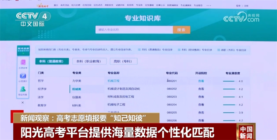 今年,教育部首次在“陽光高考平臺”推出免費(fèi)的陽光志愿信息服務(wù)系統(tǒng),將海量數(shù)據(jù)系統(tǒng)集成,進(jìn)行個(gè)性化匹配推薦,多方面幫助考生了解學(xué)校和專業(yè);同時(shí)還將舉辦“高考志愿填報(bào)云咨詢周”活動(dòng),組織各省級招生考試機(jī)構(gòu)和高校通過文字問答、視頻直播等方式,為全國考生和家長提供志愿填報(bào)咨詢指導(dǎo)公益服務(wù)。