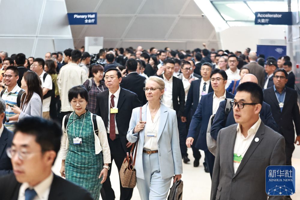 ↑ 6月25日,夏季達(dá)沃斯論壇開幕式結(jié)束后,參會嘉賓走出會場。