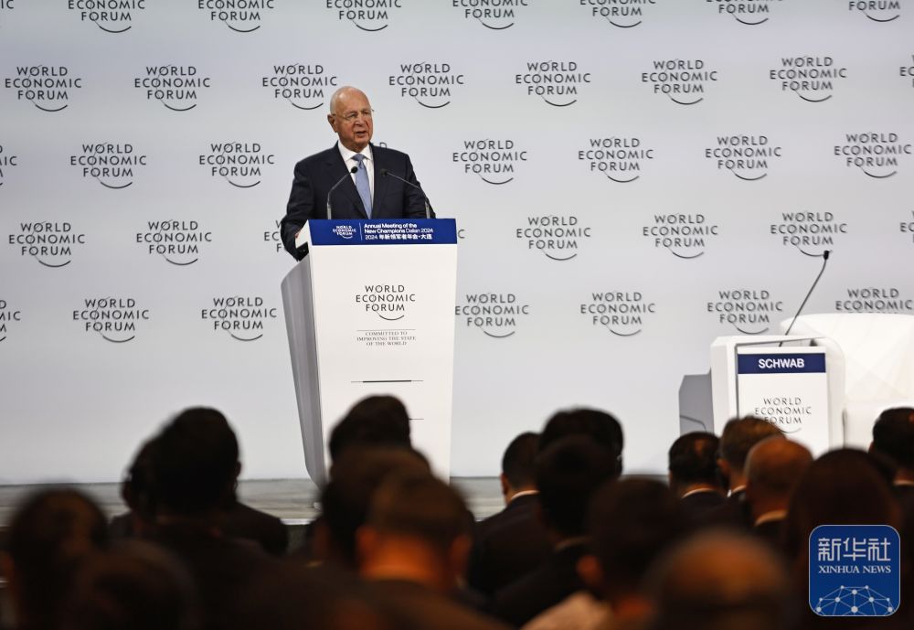 ↑ 6月25日,世界經(jīng)濟論壇主席施瓦布在夏季達(dá)沃斯論壇上致辭。