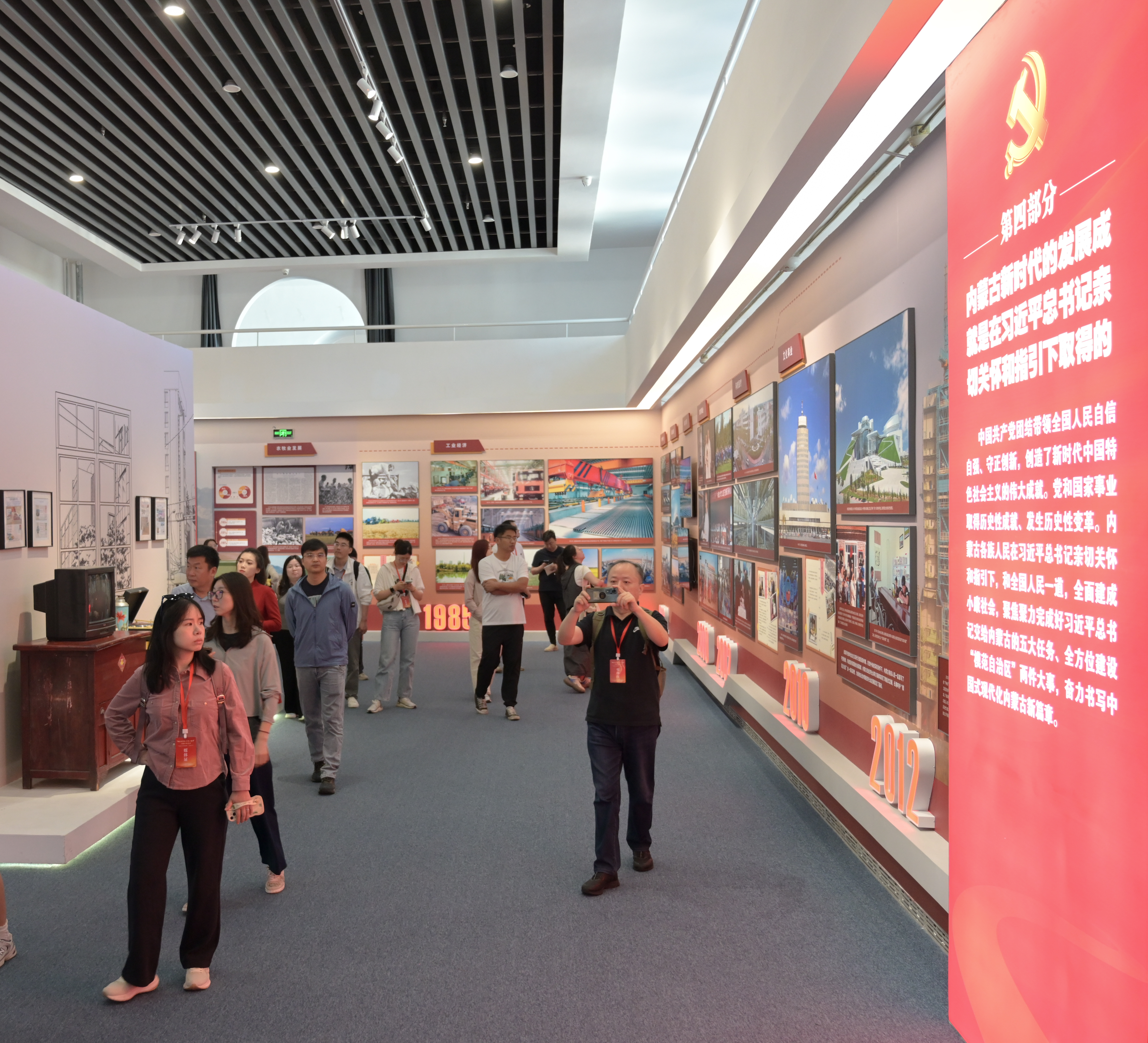 采訪團(tuán)參觀“感黨恩、聽黨話、跟黨走”主題展。