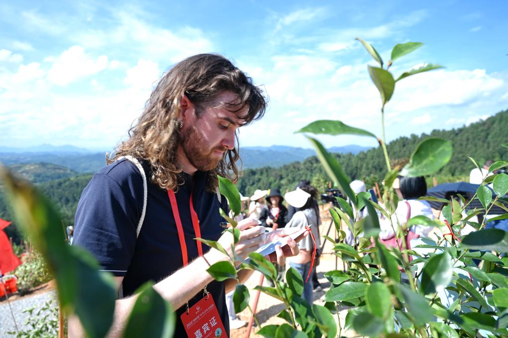 6月24日,參加2024年“鼓嶺緣”中美青年交流周的嘉賓共植友誼樹。新華社記者 秦朗 攝