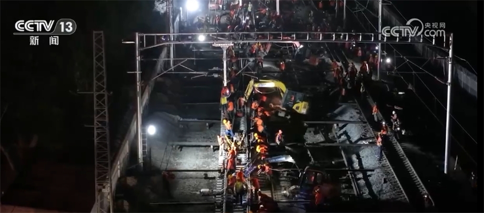 這是位于內(nèi)蒙古烏蘭察布境內(nèi)的集大原高鐵建設(shè)現(xiàn)場(chǎng),經(jīng)過(guò)5個(gè)多小時(shí)的緊張施工,新建的集大原高鐵成功接入京包客運(yùn)專線烏蘭察布站。