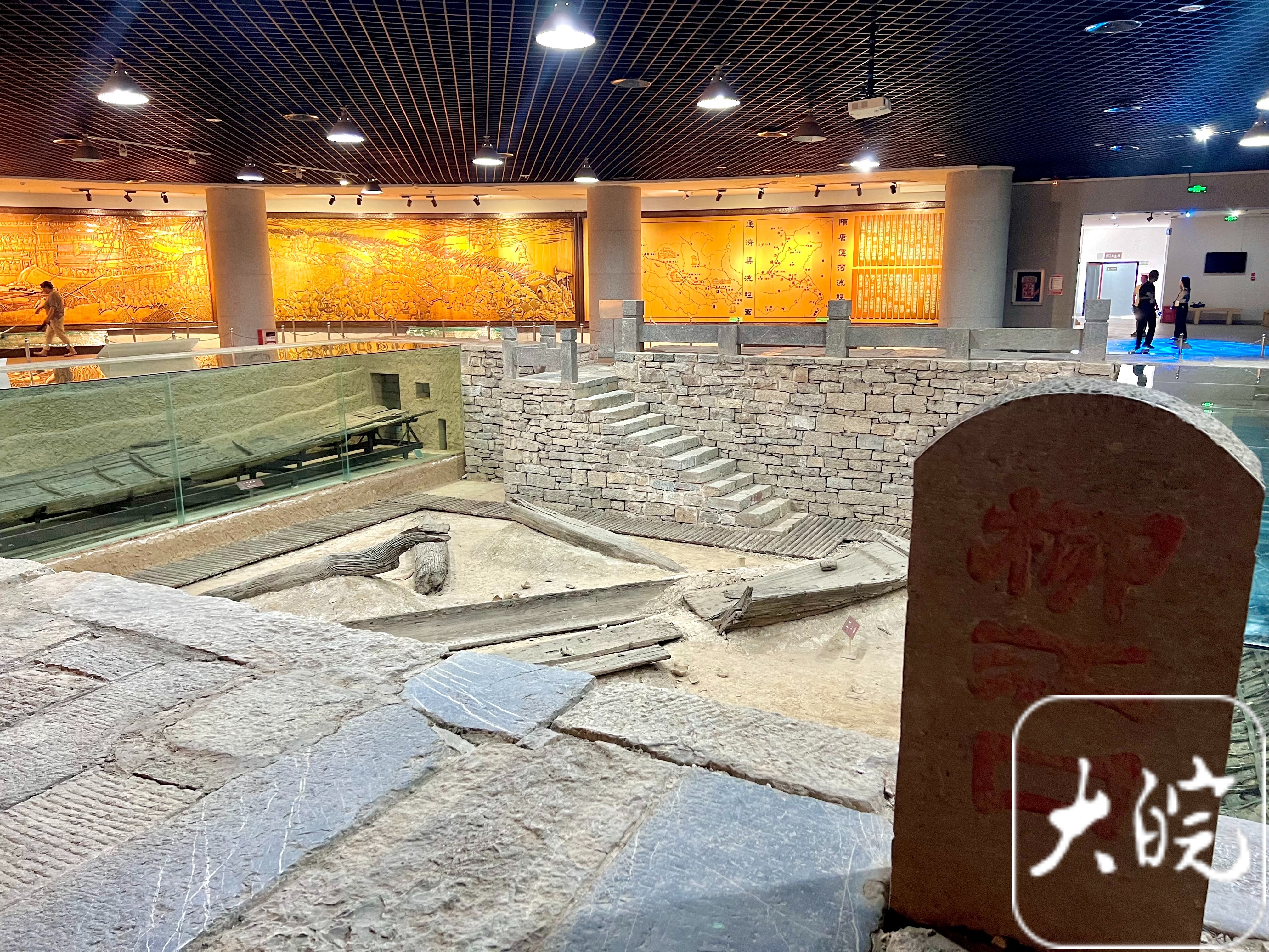 值得一提的是,館內(nèi)還復(fù)原了柳孜運(yùn)河遺址?,F(xiàn)場不僅能看到千年前的柳江口碼頭,還能看到“淮北舵”唐代貨船和唐代獨(dú)木舟。零散的船板、傾斜的木樁、散落的瓷器,再現(xiàn)了發(fā)掘時(shí)的現(xiàn)場實(shí)景,給人身臨其境之感。