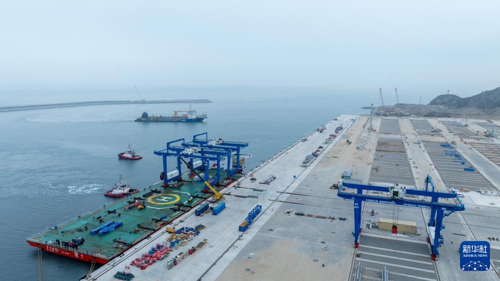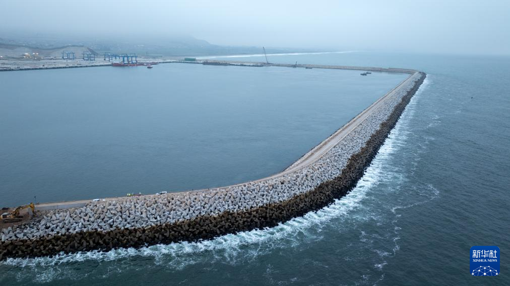 由中企控股和投資開發(fā)的錢凱港位于秘魯首都利馬以北的錢凱灣內(nèi)。從空中俯瞰,約2.6公里長的防波堤像巨臂一般環(huán)抱住碼頭設施,以阻擋太平洋海浪的侵蝕。