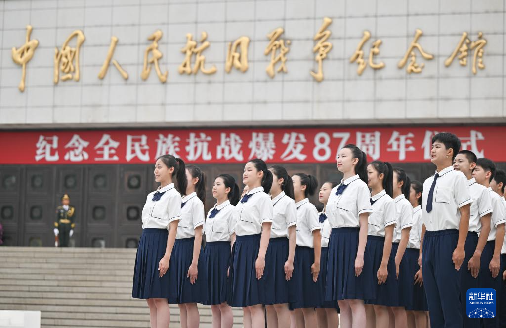 當(dāng)日,紀(jì)念全民族抗戰(zhàn)爆發(fā)87周年儀式在北京中國人民抗日戰(zhàn)爭紀(jì)念館舉行。