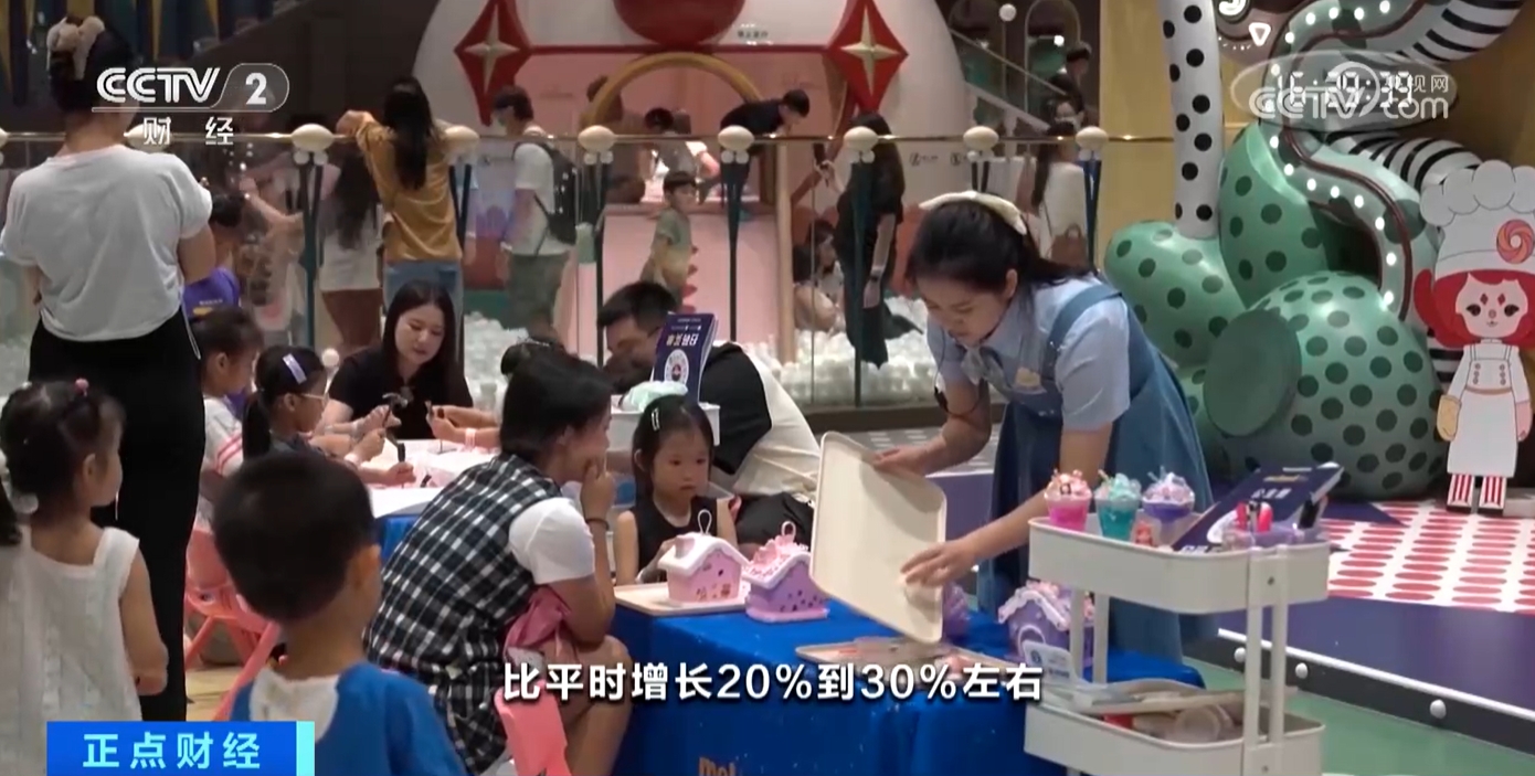 某室內(nèi)游樂場深圳一方天地店值班經(jīng)理麥麗勤介紹:“比平時增長20%至30%左右,因?yàn)楹⒆觽兎偶倭?,家長們也有空帶孩子們過來玩?!?/p>