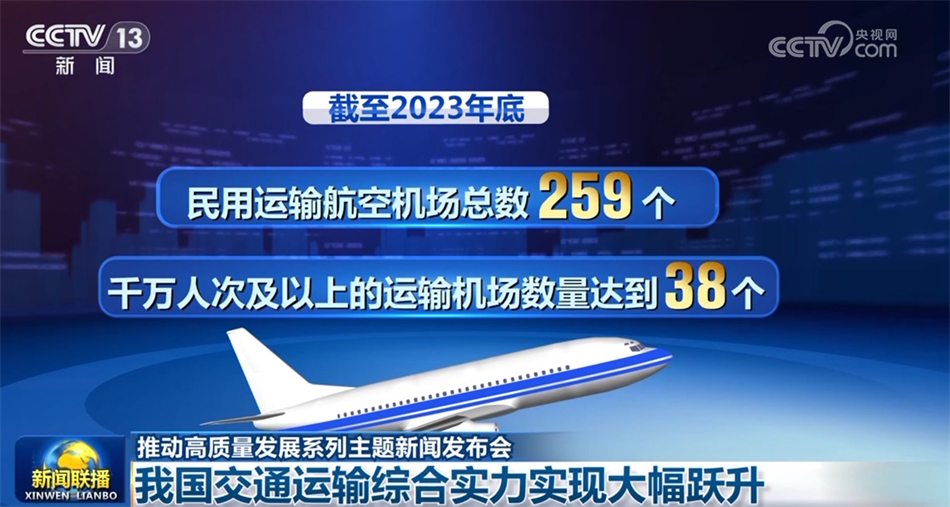 五年來,客貨運(yùn)輸不斷發(fā)展,群眾出行更加舒適便捷,貨物運(yùn)輸更加順暢高效。截至2023年底,我國(guó)鐵路營(yíng)業(yè)里程15.9萬公里,其中高鐵營(yíng)業(yè)里程4.5萬公里;全國(guó)公路里程543.68萬公里,其中高速公路里程18.36萬公里;民用運(yùn)輸航空機(jī)場(chǎng)總數(shù)259個(gè),千萬人次及以上的運(yùn)輸機(jī)場(chǎng)數(shù)量達(dá)到38個(gè)。