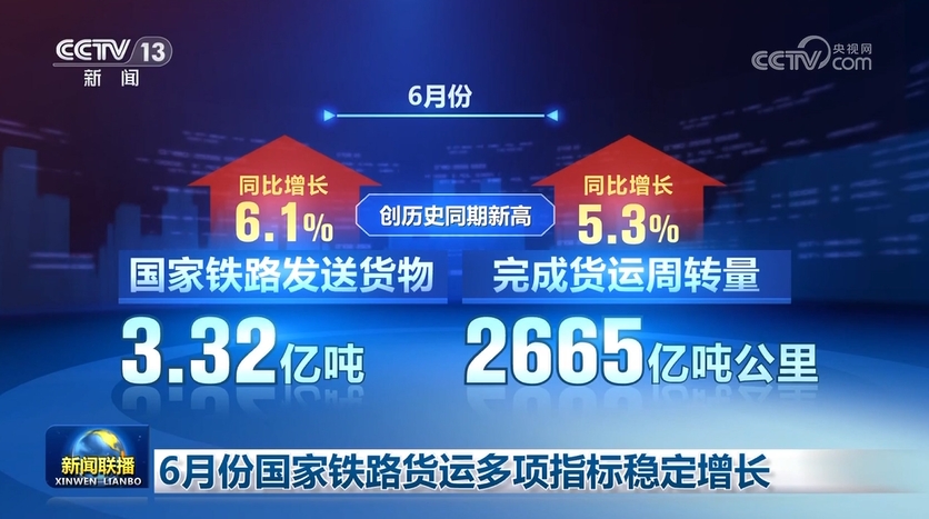 記者今天(7月14日)從國鐵集團(tuán)獲悉,6月份,國家鐵路貨物發(fā)送量、貨運(yùn)周轉(zhuǎn)量等多項(xiàng)指標(biāo)創(chuàng)出歷史同期新高。