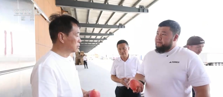 哈薩克斯坦客商伊利亞斯正在與霍爾果斯片區(qū)最大的果蔬進(jìn)出口企業(yè)洽談合作。2023年11月,也就是新疆自貿(mào)試驗(yàn)區(qū)掛牌成立的當(dāng)月,中國(guó)和哈薩克斯坦互免簽證的協(xié)定正式生效,使得雙方國(guó)民的經(jīng)貿(mào)往來更加便利。