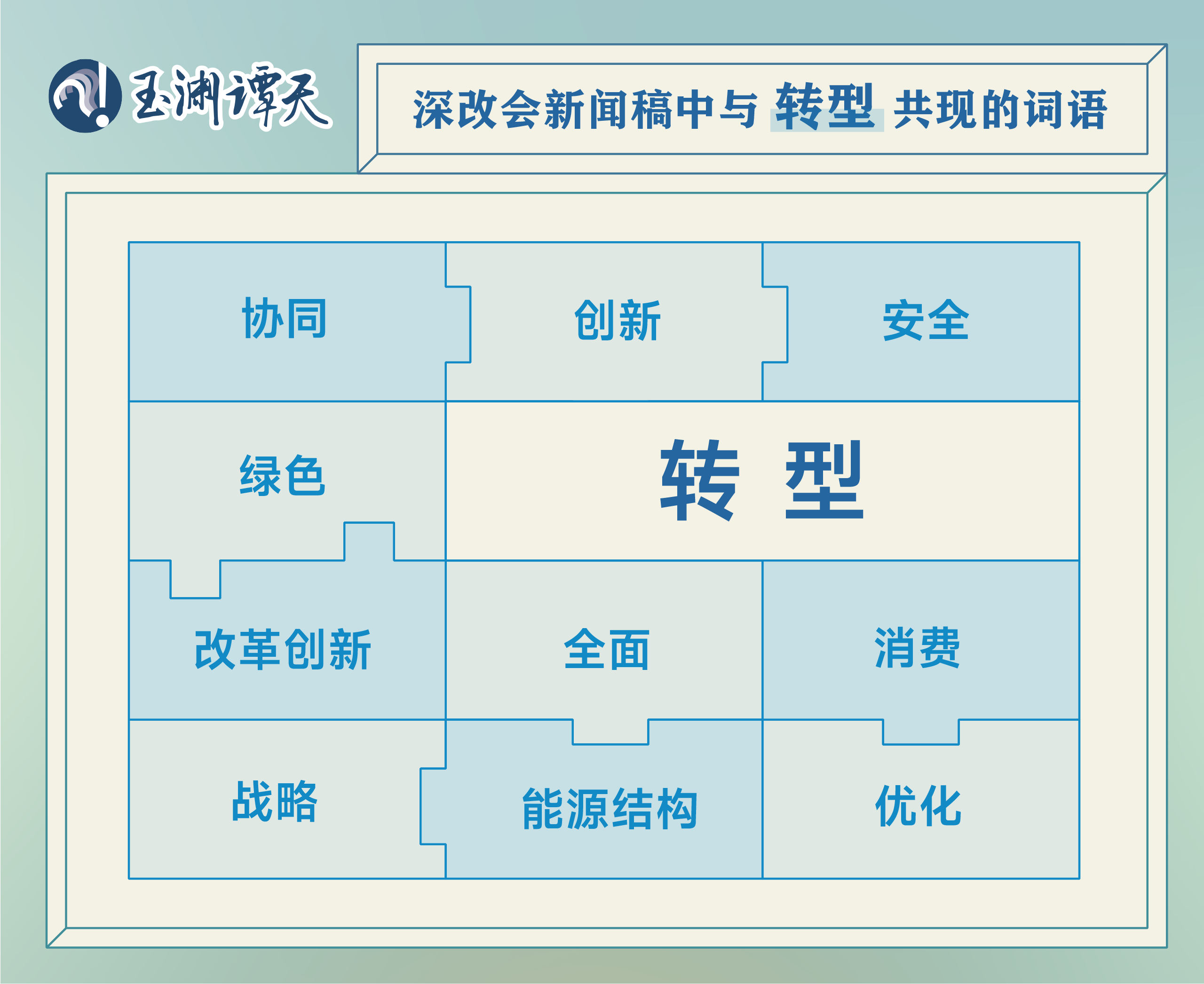 深改會(huì)的新聞稿中,伴隨“綠色轉(zhuǎn)型”出現(xiàn)的,還有一連串“轉(zhuǎn)型”——全面轉(zhuǎn)型、協(xié)同轉(zhuǎn)型、創(chuàng)新轉(zhuǎn)型、安全轉(zhuǎn)型;同時(shí)還涉及了支撐綠色轉(zhuǎn)型的“消費(fèi)轉(zhuǎn)型”,以及財(cái)稅、金融、投資、價(jià)格政策和相關(guān)市場(chǎng)化機(jī)制等政策體系的健全。