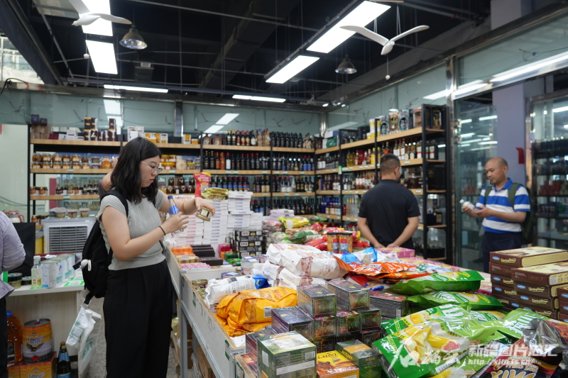 7月12日,游客正在巴克圖中哈邊民互市貿(mào)易區(qū)內(nèi)的絲路文化商品城購物。代姣美攝
