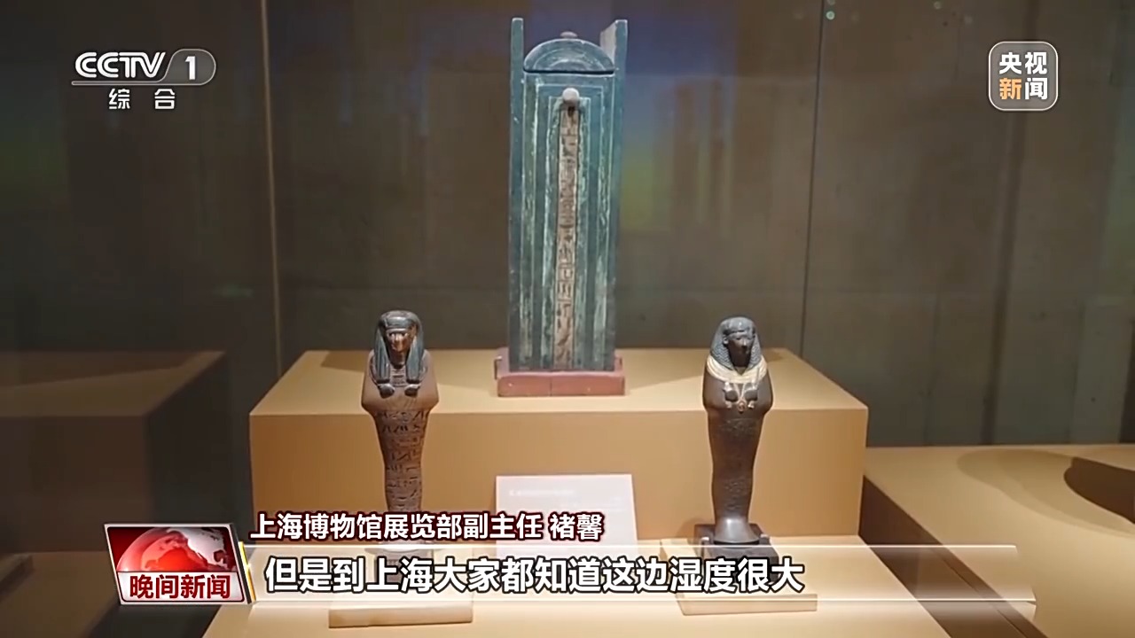 上海博物館展覽部副主任 褚馨:埃及的天氣比較干燥,它保存得特別好,但是到上海大家都知道這邊濕度很大,我們對它還進(jìn)行了脫蟲的處理,全部處理好了以后,才放到恒溫恒濕的展柜當(dāng)中。
