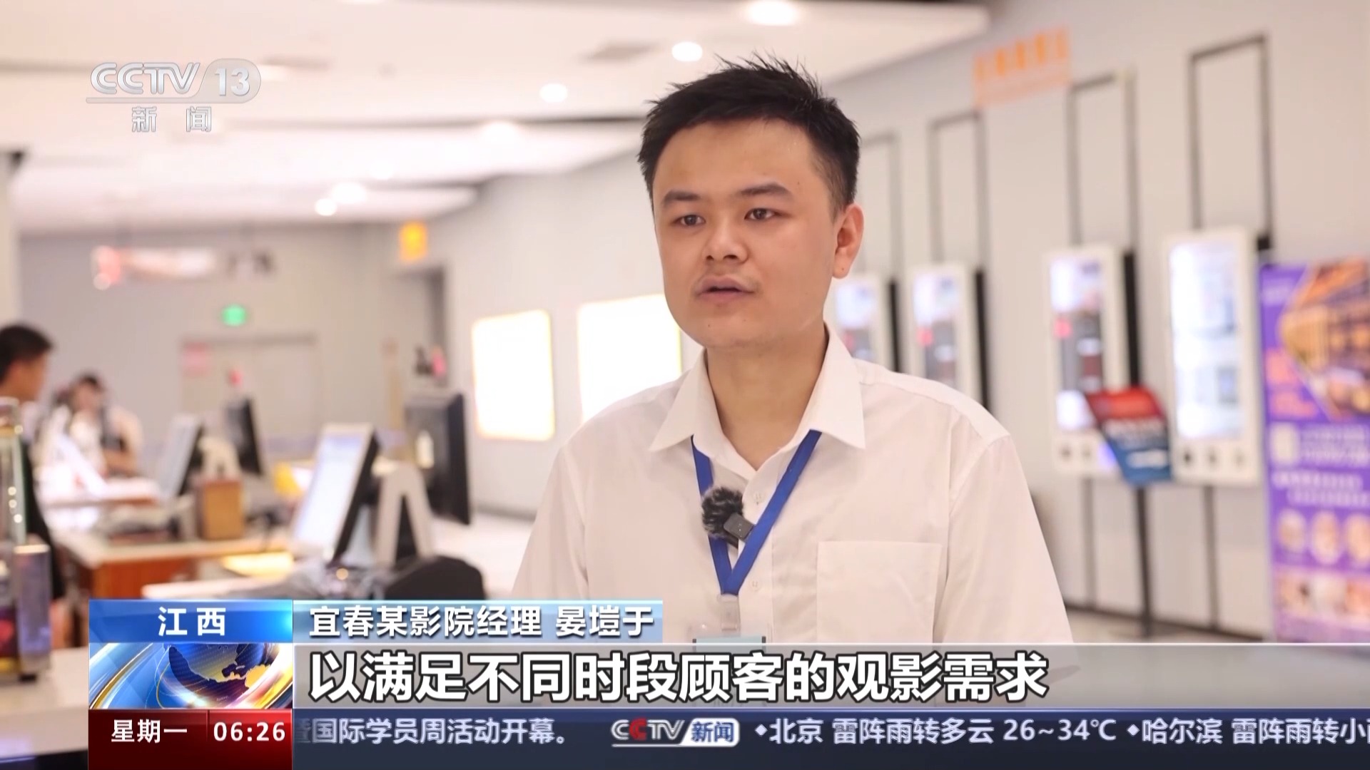 宜春某影院經(jīng)理 晏塏于:一方面,我們增加了主力影片的排片量,以滿足不同時(shí)段顧客的觀影需求;第二方面是我們影院增派了人手,提高了影城的接待能力和服務(wù)水平,減少顧客的排隊(duì)等待時(shí)間。