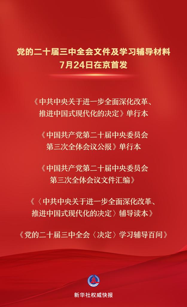 黨的二十屆三中全會文件及學習輔導(dǎo)材料7月24日在京首發(fā)