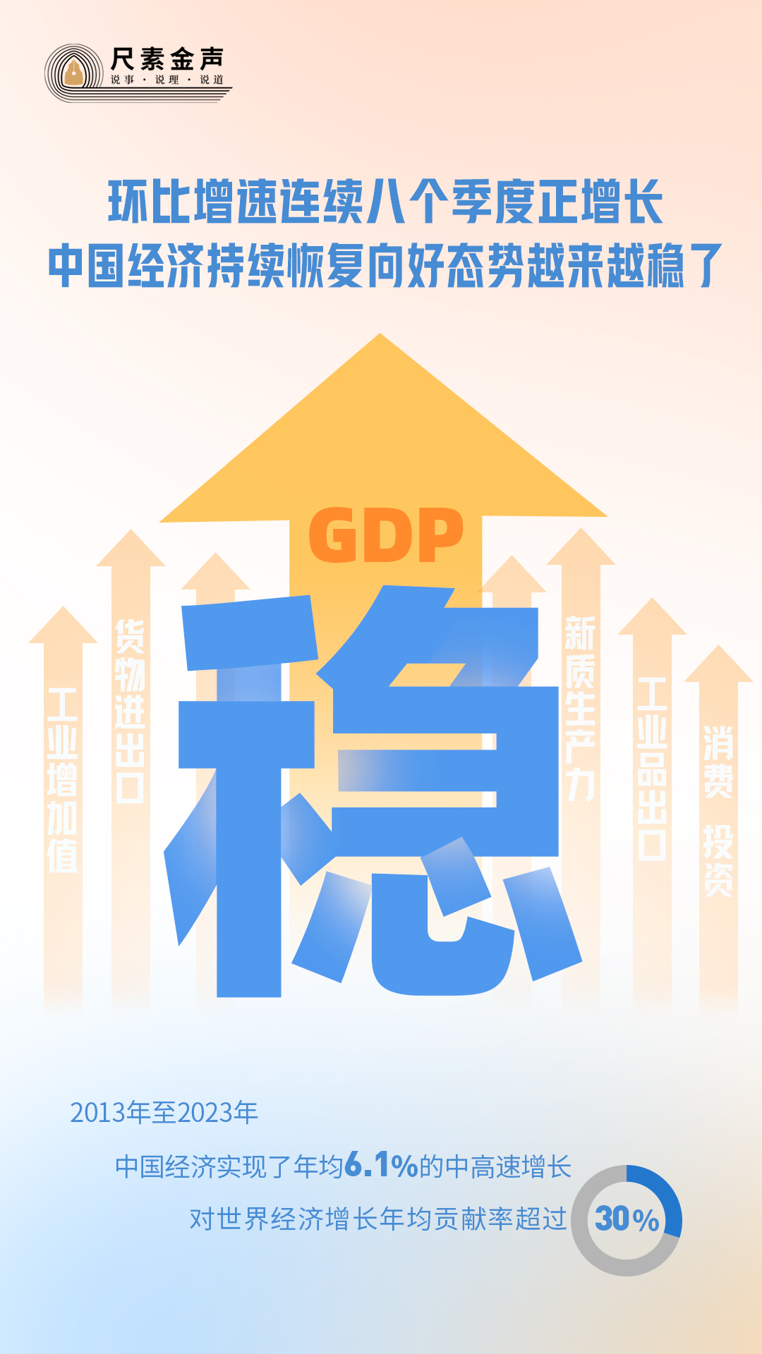 從環(huán)比看,2022年第三季度以來,中國的GDP環(huán)比增速已經(jīng)連續(xù)8個季度保持正增長,中國經(jīng)濟持續(xù)恢復向好的態(tài)勢越來越穩(wěn)了。